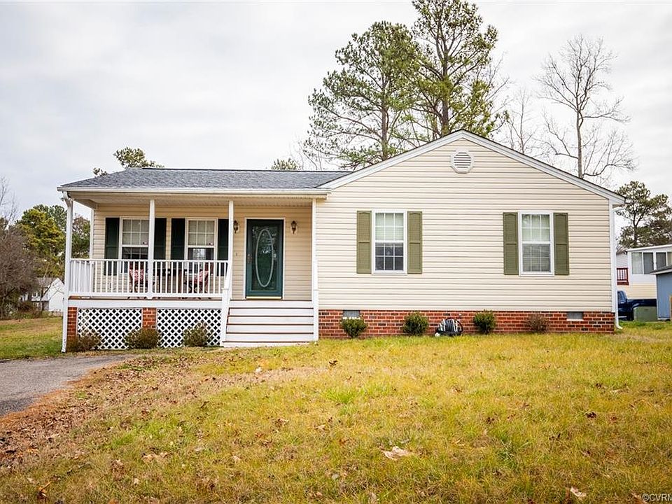 Super cute rancher located close to many amenities in Chesterfield County, 3 bedroom 2 bath with large 12 x 12 composite deck, paver patio, and good sized back yard. Vinyl siding, newer roof, water heater and HVAC. Newer laminate floors through hall and kitchen, Large family room with carpet and French door that leads to the back deck, Kitchen has lots of light, bay window eat in area and tons of cabinet space. 2 good size bedrooms with carpet and closet. Master bedroom with stand shower master bath that has been updated and walk in closet. Sit on the front porch or back deck and have your morning coffee. Refridge, washer and dryer convey,