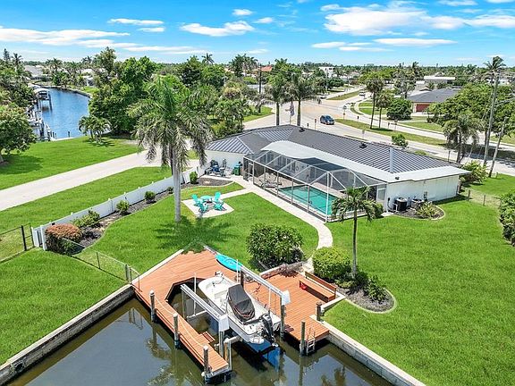 Experience the ultimate Florida lifestyle in this stunning Gulf-access pool home—no bridges, just minutes to open water! Located in Cape Coral’s sought-after Yacht Club, this home sits on an oversized corner lot with a heated saltwater pool, outdoor kitchen, 10K lb boat lift, and marine-grade dock. Inside offers 4 beds, 4 baths, a Florida room, hardwood/laminate floors, and a chef’s kitchen with granite, shaker cabinets, and double oven. The primary suite features lanai access, ensuite with jacuzzi, dual sinks, and a hidden closet. New 2024 metal roof, impact windows/doors, 2 A/Cs, Gemstone lighting, and more! Minutes to downtown, Bimini Basin, dining, beaches, and Yacht Club amenities!