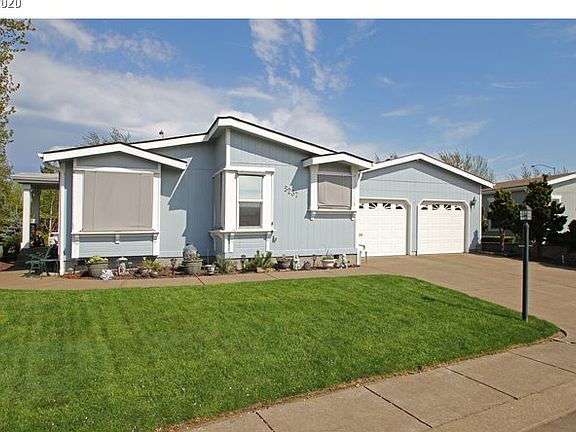 Lovely 1995 Silver Eagle Manufactured home in Eugene's Premiere gated community in Summerfield Estates. This delightful home features beautiful engineered wood or laminate flooring in living & dining room, electric fireplace, $14,000 walk-in tub in main bath, vaulted ceils, heat pump, utility rm w/sink (washer & dryer included), sun room, and kitchen w/small island, pantry & Samsung stainless refrigerator. Beautifully landscaped yard! Brand new leaf guards for gutters!