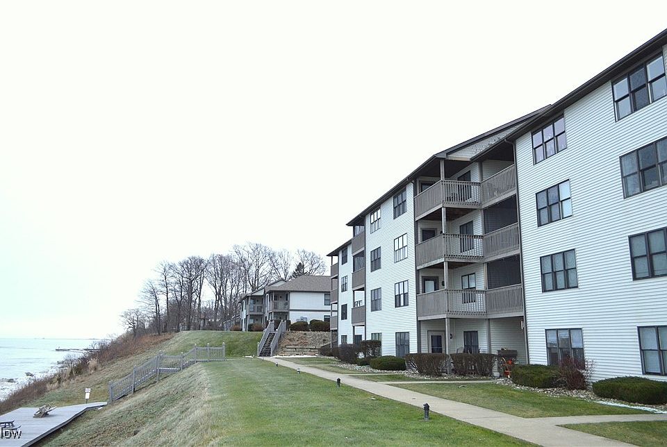 Experience lakeside living at its finest in this beautifully updated 2 Bdrm/1.5 Bath Lake Erie front condo. Step inside to discover a bright, open layout featuring fresh finishes & thoughtful upgrades throughout. The spacious living area flows seamlessly to an amazing, covered balcony~ perfect for relaxing while enjoying breathtaking views of the lake. Recent enhancements include new Pella windows w/custom blinds, blown insulation in both attic & walls for year-round comfort, a tankless water heater for efficiency. Bedrooms are comfortable & inviting, offering ample natural light & closet space. Enjoy the amenities of this well-maintained community: sparkling inground pool, community building, & beautiful grounds designed to complement the tranquil lakefront setting. This stunning condo combines modern comfort, style & unbeatable views~ perfect for year-round living or a serene getaway retreat. Special Financing incentives available on this property from Sirva Mortgage.