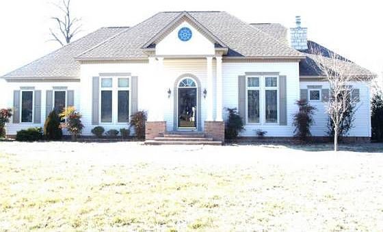 Beautiful best describes this 3 bedroom 2 bah vinyl sided home sitting on 3 acres just outside of town. Lovely hardwood floors in kitchen, dining room, and great room. Beautiful wood closet doors and wonderful open floor plan - just great for entertaining. Kitchen features custom cabinets, granite countertops, built in oven, commercial Viking gas cook top, dining bar, and door to patio. Bay window in dining room. Great room features a gas log fireplace, extra tall ceilings and crown molding. Also a nice shop outside and a storm shelter...