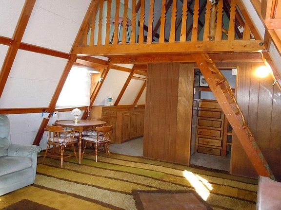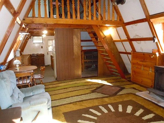 Weekend get-away A-frame cabin, with bedroom kitchen, bathroom and closet on main level - two sleeping areas upstairs. Circular Driveway. Needs a little TLC... being sold in ''As-Is'' condition. Wastewater system is going to be replaced for the new buyer. Nice level lot in a popular neighborhood!