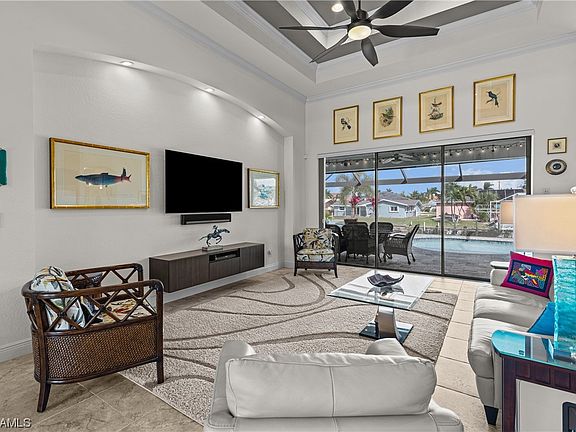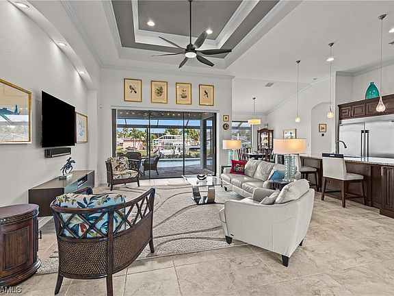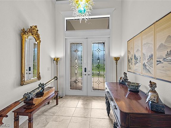 An invitation to appreciate top notch quality, prime location, and FL lifestyle. Whether you are a serious boater, (5 minutes out) or interested in craftmanship & customization, don’t miss this opportunity. Built to hurricane standards w/ elevation to match, this home is feature rich. One owner property w/ many upgrades: elec. Kevlar hurricane shutters, outdoor kitchen, large Captain's composite dock, 10k boat lift, plus extra 1500 lb lift for rowboat/jet ski, 2 pavered sidewalks leading to dock, custom pool lighting, waterfall feature & in-pool spa, auto dusk/dawn lighting, custom blinds & window coverings, upgraded fixtures, and a stunning one-of-a-kind chandelier in entryway are just a few extras. Floorplan is open and welcoming and features large Chef’s kitchen with commercial Frigidaire refrigerator, formal dining, walk-in closets, xtra deep (22 ft) 3-car garage w/ insulated hurricane rated doors rated to 160 mph and custom built-in shelving, a flex/den/office space w/ modern, stylish customized storage. Absolutely flawless. Meticulously maintained throughout. Experience the ultimate waterfront lifestyle in this gulf access pool home with the very best direct sailboat access.