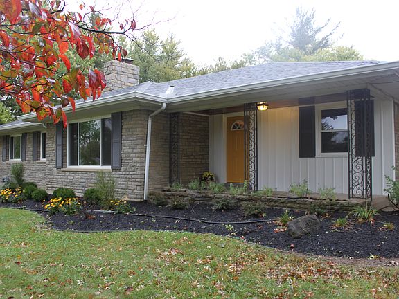 Beautiful, Stone Ranch on a large 1.3 acre corner lot. This unique setting has many mature trees along with new landscaping around the perimeter of the house. A whole house remodel over the past 3 months has included new roof, gutters, windows, open concept kitchen with new cabinets, granite counters, tile backsplash and stainless steel appliances. All hardwood floors have been refinished along with many new light fixtures and updated electrical. Some updates have been made to 2 bathrooms along with a new bathroom added in the basement. The basement features a unique brick bar, new flooring and new lighting. All walls on both floors have been painted to a soft neutral light grey and all baseboards and other trim is white.