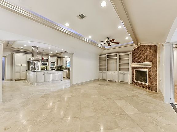 Architectural digest quality renovation. State of the art kitchen featuring 7x8 granite surfaced island w/5 burner gas cook top w/SS vent-a-hood, prep sink, under mount lighting, double oven. Up lighting in all living areas & both masters, bdrm w/wall of cabinetry, Liv room areas feature surround sound ceilings, 9.5 ceilings, double pane low E windows, sconce lighting, French doors in master beds + kitchen to backyd, Pergola covered patio, totally landscaped, sprinkler sys. Bedrooms feature hdwds. Beautiful built-ins throughout home.