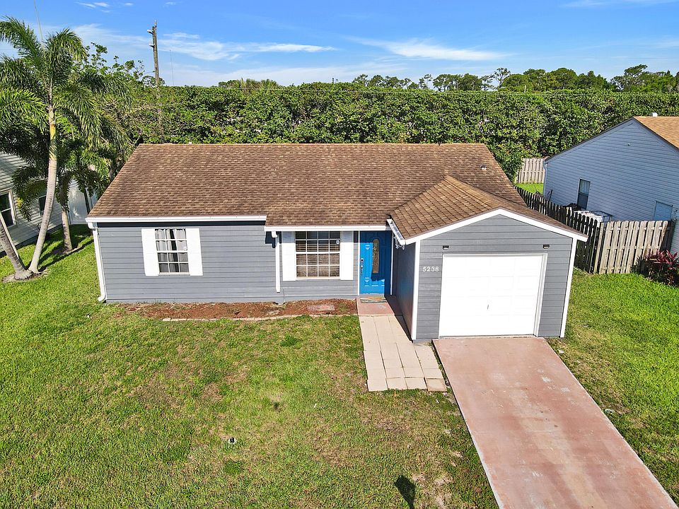 Tucked within the beautiful and much sought-after community of Countrywood, this gorgeous home offers two bedrooms, two baths and a bright, inviting interior. As you approach, fresh paint, newer gutters and a single car garage add charm and convenience. Enter into the main living where a lofty vaulted ceiling, upgraded fan and baseboards plus large sliding doors make this space feel welcoming and elegant. Just beyond, the lovely white kitchen boasts stainless steel appliances, solid wood cabinets with upgraded hardware, and separate access to both the garage and backyard. Each of the bedrooms is comfortably sized with wood look flooring and a ceiling fan. The master also offers excellent closet space and an ensuite bath with solid wood vanity and tiled walk-in shower. (SEE SUPPLEMENT) The secondary bath has a solid wood vanity with a shower/tub combo. Host a BBQ with family and friends! Out back, the spacious, fully, fenced yard is just perfect for children to play and pets to roam, plus the canal behind adds wonderful privacy. Also enjoy a Whirlpool washer and dryer tucked away for convenience. This Ideal location offers convenient access to the turnpike as well as excellent shopping, dining and entertainment. Schedule your showing today!