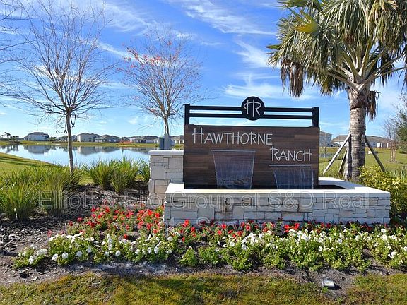 Check out this brand new energy efficient home in the new community Hawthorne Ranch. This 3 bedroom 2.5 bath home boasts an open floor plan, open floor plan, tile floors on ground floor and carpeting upstairs. Large open kitchen with center island, granite counter tops and stainless steel appliances. Large laundry room with washer and dryer included. The spacious primary bedroom offers a private ensuite that includes a dual sink vanity and glass step in shower as well as a walk in closet. Upstairs offers a small loft area perfect for a play area or mini office. 2 car garage, covered lanai overlooking community pond area. George Jenkins school district. Late 2025 community clubhouse will be complete and will include a pool area and much more.