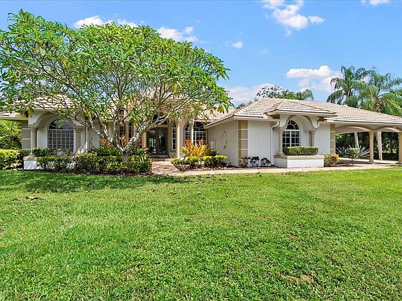 Best Buy! 5-Acre equestrian property w/ 4Br/4Bth pool home for the active family w/ great entertaining areas. 11-Stall center-aisle stable, riding arena & 6 paddocks. The property boasts 2,000 sq. ft. (50'x 40') storage building with 3 garage bays & full bath. Large enough for your RV, horse van or boat, the possibilities are endless! The home features a center island kitchen, gas Thermador range, marble floors, plus an 1,800 sq. ft. great room for hosting socials with a wet bar, wine cooler and expansive sliding glass doors out to the screened pool, hot tub & summer kitchen. Relax in the primary bedroom suite w/ your jacuzzi tub, steam shower & private tv seating area. Back at the barn, the tack & feed rooms are climate controlled, stalls are 15x12, plus 4 wash racks & 250' x170' arena. Other bonus features: