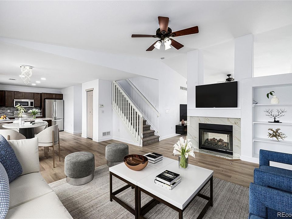 Welcome to this totally remodeled 3 bedroom, 3 bathroom home in the highly desirable Park View neighborhood, located in the award-winning Cherry Creek School District. Step inside to a bright living room with vaulted ceilings and a cozy double-sided fireplace. Luxury vinyl plank flooring runs throughout the open main level, connecting the family room, dining area, and updated kitchen featuring granite counters, stainless steel appliances, Brand new kitchen cabinets, and a stylish backsplash. Upstairs, you'll find a spacious primary suite with a remodeled ensuite bath, plus two additional bedrooms and a second updated full bath. Recent updates include (everything! but more specifically) A Brand new roof, All new windows, fresh interior paint, all new flooring, Brand new kitchen and appliances, remodeled main floor bath, finished basement, and WAY more! Relax or entertain on the private covered patio overlooking peaceful open space. Conveniently close to parks, trails, shopping, and major routes—this move-in-ready home has it all!