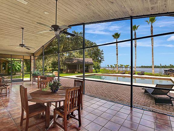 this is a beautiful, private, lakefront estate with all you could want for living in paradise. Large, well maintained 4/3 home , pool house with large bedroom/kitchenette, full bath, plenty of storage, and summer kitchen on large covered patio facing a large salt water pool surrounded by paver deck and walkway leading to dock, boat house and covered boat storage with mechanical lift. There is an additional storage building on the property. The estate has been professionally landscaped and maintained with landscape lighting and irrigation pump using lake water. House has brand new roof and newer HVAC stystem. Well and septic, Pool house has back up generator. HIgh speed wifi underground has been added to make the house ideal for working from home. Paved driveway. Three car garage. This estate has it all! Seller willing to finance.