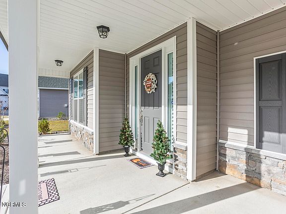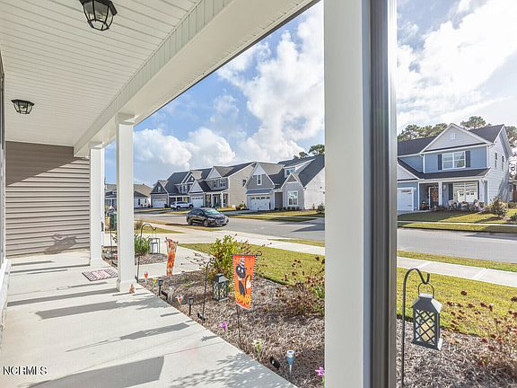 Better than brand new and only one year old! This beautiful 2 story home features 5 bedrooms, and 4 baths in the popular sold-out community of Fortune Place. The spacious kitchen with an eat-in island is perfect for gathering with friends or family. Featuring timeless white cabinets with soft close drawers, a navy island, built in oven and microwave, gas cooktop, quartz countertops, tile backsplash and pantry. The bright and spacious family room has a gas fireplace, accented by a shiplap surround and opens to the 250 square foot covered porch. Enjoy dining in the formal dining area accented by boxed trey ceiling with wainscoting or the spacious breakfast area just off the kitchen and family room. The first floor is completed by a guest suite and mudroom with custom drop zone off the garage. Upstairs there is plenty of room for all. The spacious primary bedroom with ensuite includes a separate tub and walk-in shower, 2 sink vanity, and huge walk-in closet with custom wood shelving. Two additional bedrooms, bathroom, large rec room or fifth bedroom with bathroom, office with double french doors and a laundry room complete the upstairs. You will enjoy the large, covered porch overlooking the spacious backyard. Additional features in this home include LVP flooring throughout the first floor living areas, plantation shutters, wood stairs and tankless gas water heater. Tucked away in Central Wilmington, Fortune Place is a quiet, centrally located community convenient to area restaurants, movie theater complex, grocery stores, retail shops, parks and just 15 minutes to Carolina Beach or Wrightsville Beach. Residents can relax and enjoy the community pool, clubhouse, sidewalks and open recreational areas.