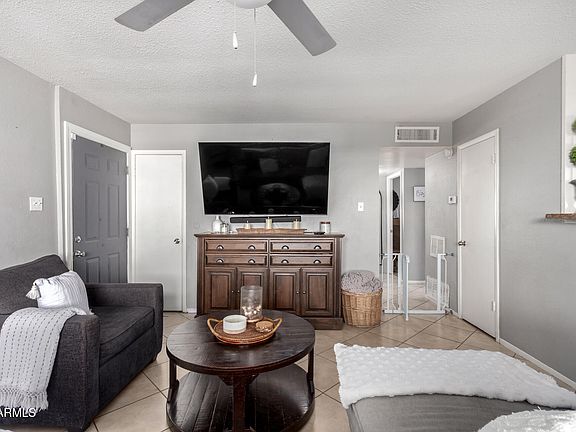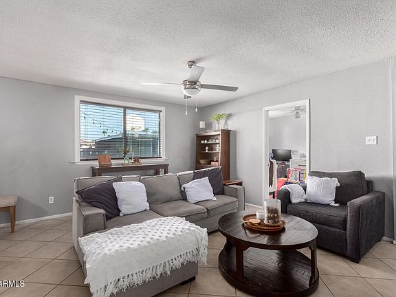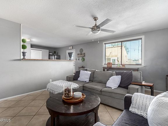 Charming North Glendale home offers 3 bedrooms, 2 full bathrooms with an easy flowing floor plan, low maintenance landscaping and secured parking. Kitchen opens up to the living area, and offers updated wood cabinets, granite-look countertops and backsplash, pantry and a sit-up breakfast bar. Tile and ceiling fans and newly painted interior throughout. Newer stucco exterior. Large backyard is secured by block wall and offers access to enclosed carport parking and a finished, powered and climate controlled office space! Quiet location close to area parks and schools.