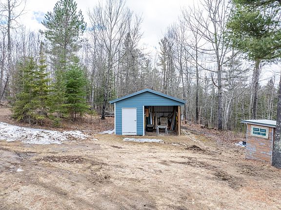 Inside, the home features large windows that bring the outdoors in, flooding the open-concept kitchen, dining, and living areas with natural light. A cozy wood-burning fireplace anchors the space, making it the perfect place to unwind after a day on the water or in the woods. The main level includes a spacious bedroom and full bath, plus a convenient laundry/mudroom. Upstairs offers an additional bedroom, a half bath, and a sitting area for reading or relaxing. In-floor heat keeps things toasty in the cooler months, and the circle driveway adds ease and functionality year-round. Whether you're looking for a quiet retreat or an outdoor adventure hub, this property offers the best of both worlds—your private escape in the forest, just minutes from some of the area’s best lakes and trails.