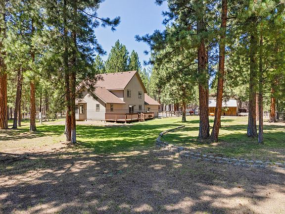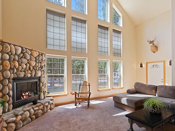 Gorgeous custom Northwest style home in Ponderosa Pines on 1.25 acre corner lot and close proximity to public land. Window wall & rock fireplace make for a dramatic entrance into the vaulted living room that makes you feel like you could be on vacation forever. Main level boasts a spacious primary suite with a jetted tub and separate shower. Two bedrooms, full bath w/ shower tub combo and bonus room are upstairs. There are many special touches and wood accents to appreciate in this home along with an oversized 624 sq ft garage. Large deck, fenced yard with a green house next to 30'x40' shop make the possibilities endless for this beautiful property that you can call your own!