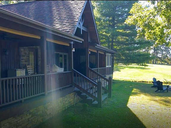 Amazing is just one word to describe this property. This property of nearly 15 acres has lots to offer. We can start with a custom built, story and a half, home built from beautiful western cedar. The home has 3 bedrooms and 2.5 baths, large rooms throughout, including a new edition that has endless possibilities. It's currently used as a sewing room. Could be all season room, game room, playroom, use your imagination. The large living room has a custom built rock fireplace w/gas logs. The view from the living room is amazing as it looks out over the back half of the property. The The primary bedroom is on the 1st floor and is huge. The bedroom also has a view of the back half of the property. Also, has a nook, perfect for nursery or home office, and WIC. Open concept kitchen w/ all new appliances. Home has hardwood throughout and beautiful wood walls. Home has a covered deck overlooking the pond and a large screened in section. Blacktop driveway leads around the property to a 3 bay workshop w/ studio apartment above, a large fully stocked pond w/ gazebo, back to a paddock w/ 4 stall barn w/ tack room & hayloft. You'll find a couple separate fenced fields for animals. Come see!!!!