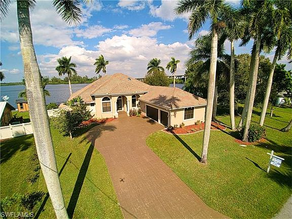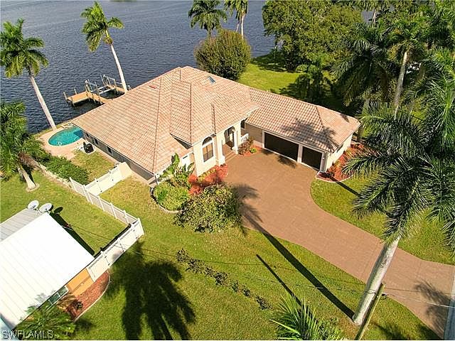 DIRECT GULF ACCESS, NO BRIDGES & BUILDER UPGRADES. This Gorgeous Riverfront home with a custom built boat dock is located right on the Caloosahatchee River with coast to coast access via the Intercostal Waterway and has easy access to the Gulf of Mexico. Built in 2007 by Royal Corinthian, this unique Italian design home features a pool with waterfall overlooking the stunning river view, with 26' high ceilings, gourmet kitchen, and granite counters tops, 3 sets of columns, elegant chandeliers, panoramic river views, and a wraparound patio sitting area. This luxurious home features beautiful craftsmanship and architectural details throughout the house.