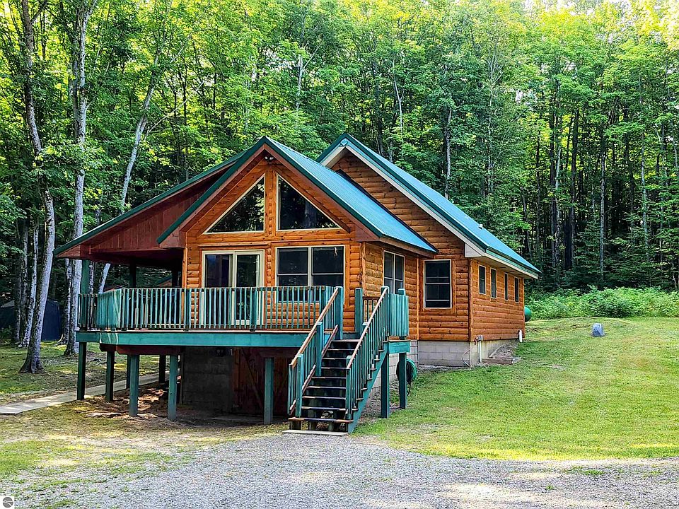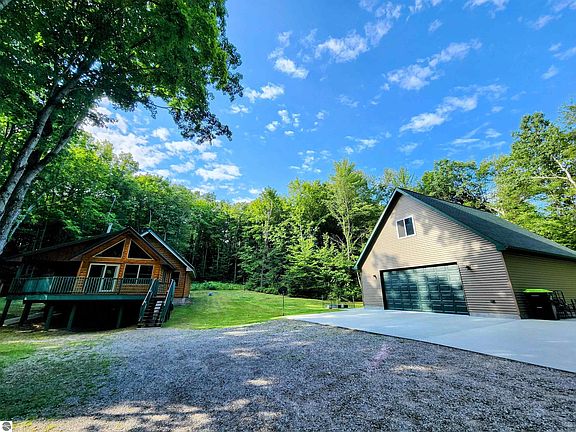 Discover this stunning log home, perfect for your northern Michigan residence or vacation retreat. Featuring recent updates, including a whole-house Generac generator installed in 2023, this property offers both comfort and reliability. The home also boasts a spacious 28x32 garage with a versatile living space above. Set on over 2.5 acres, encompassing three lots within the scenic Lakes of the North association, this property provides ample privacy and natural beauty. The association offers an array of exceptional amenities, including an indoor pool with a waterslide, lazy river, and hot tub. The well-equipped workout room in the clubhouse and the beautifully maintained 18-hole golf course with a pro shop and restaurant further enhance the lifestyle offered here. Ideal for outdoor enthusiasts, this location is a snowmobiling and SxS paradise, with trails running throughout the subdivision. Make this picturesque log home your northern escape and enjoy all the recreational and relaxation opportunities it has to offer!