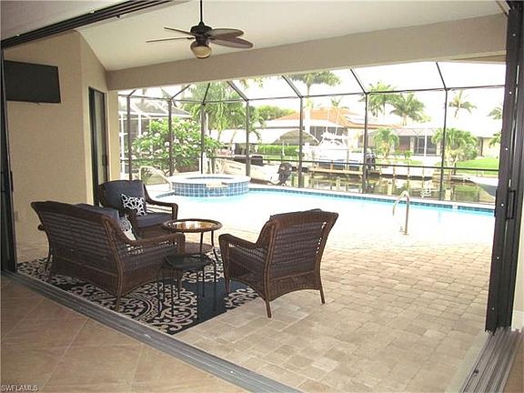 DIRECT GULF ACCESS WATERFRONT HOME just minutes to the Gulf of Mexico with no bridges, close to shopping, restaurants, parks and located in the popular yacht club area. This 3 bedroom, 3 bath home with den is almost new and has hardly been lived in built in 2015. Features, 3 car garage for extra storage , high impact windows and doors, plantation shutters, paver driveway, tile roof, pool bath, stainless steel appliances, tile throughout and hardwood floors in the master. The owners had this home custom built and spared no expense when choosing options and upgrades galore. Custom kitchen cabinets, granite counter top, eat in kitchen, breakfast room, and formal dining. The great room features high tray ceiling with crown molding and wide base trim. The 90 degree pocket sliding doors opens up the back of the home inviting you to enjoy the Florida lifestyle to the maximum either sitting in the covered lanai area next to the heated pool and spa or have refreshments at your outdoor summer kitchen. Follow the paver walk to the 10k lb boat lift and dock with captains walk that's complete with Tiki Hut. Put this home on your list as a must see.