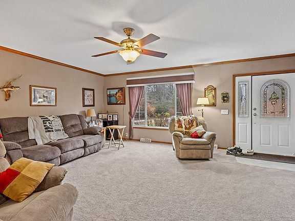 Total seclusion! Up the winding drive, tucked back in the woods is a 3.3 acre parklike setting. This sprawling manufactured home offers 4 bedrooms & 2 baths & an awesome floor plan. This is not a normal manufactured, the owners upgraded to include a 5/12 pitch roof, 2x6 walls , drywall throughout, full 8 foot flat ceilings w/ crown moulding..the list goes on & on! The floor plan boasts a huge living room with lots of natural light. The massive eat in kitchen has a walk in pantry, huge island & glass doors leading to your rear patio. The master suite is a must see. With french doors leading to a bath that has a make up vanity, dual sinks, a corner garden tub, & a 60 inch shower! Got toys? Check out the 30x30 900 sqft fully finished garage. If that's not enough, there are 2 sheds for tools or chickens. Easy access to DeMotte schools & I65. 1/4 mi from Sandy Pines Golf Course