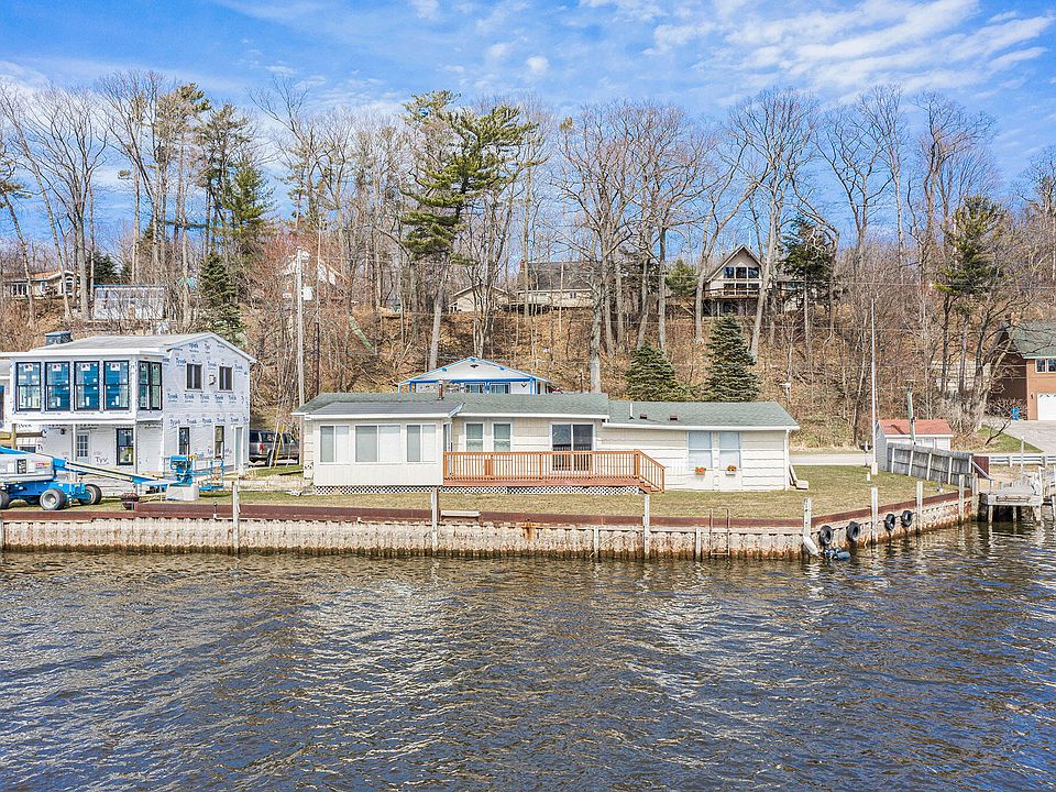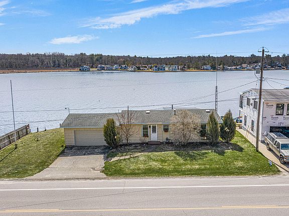 Pentwater Lake waterfront home/cottage. Adorable home w/2 bedrooms, 1.5 baths, oversized 2 car attached garage and approx. 100+ ft of waterfront w/steel seawall and dock right out front. Enjoy the open floor plan w/living room with fireplace, dining room & kitchen - water views from almost every room in the house. Sliding glass door in dining area opens to the deck for easy access to outdoor living spaces. Primary bedroom has a 3 season room with 3 walls of windows to enjoy the amazing sunsets & water views. Crawlspace has Ayers basement system installed. Other updates include newer water heater, furnace, AC & electrical. Short-term rentals are allowed. Enjoy access to Lake Michigan from Pentwater Lake, local shopping, restaurants and more!
