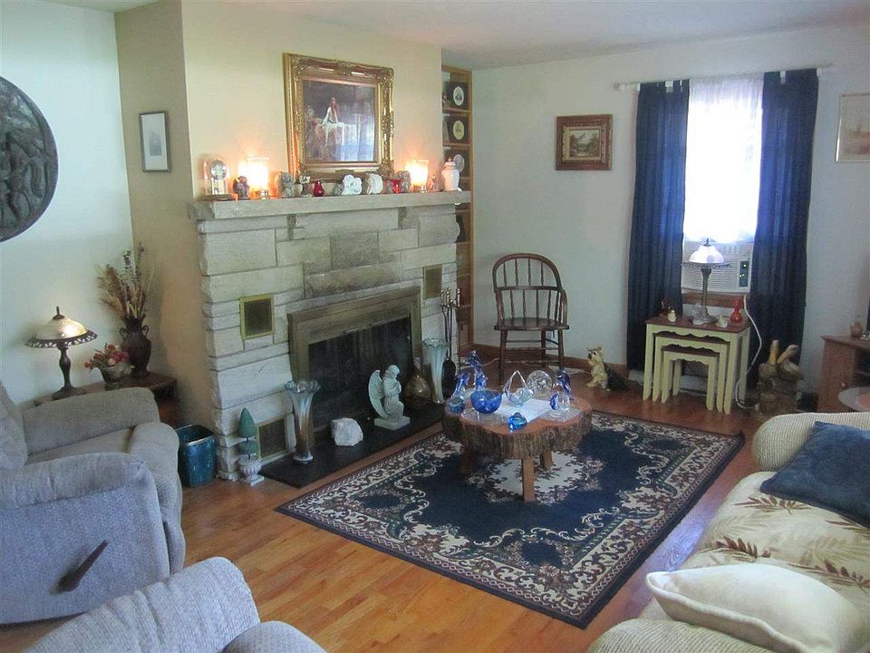 City close country perfect on this sprawling limestone ranch. 2 masonry fireplaces-one in LR and other in finished basement, plus wood burning stove in family room. Extensive hardwood flooring. Nearly 1 acre lot features pave-er patio, pond and 24x 40 cement block out building. All of this with city water and sewer. Entire yard fenced. All rooms nice sized. Basement finish includes large family room with masonry fireplace, full bath and 4th bedroom/den. Large eat in kitchen with formal dining area. Cozy, comfortable yet spacious. Move in ready.