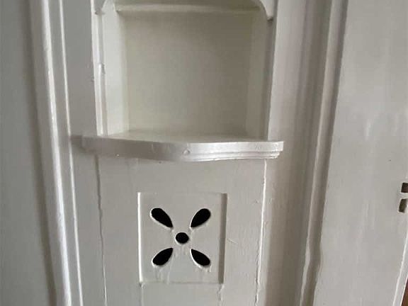 1935 vintage Craftsman home has not been âflippedâ but has many new updates to original features. This home has 3 extra large bedrooms with 1 1/2 bathrooms; also includes original glass door knobs and refinished 4â wide original wood floors. Closet doors have mirrors made into them. There is an original fold down ironing board mounted in the wall in the kitchen. There is a 1/2 bath located in the mud room with entry from the backyard. The backyard is fenced and has clothesline poles. Interior also has beautiful archways between the open dining room living room areas. The windows are original which surprisingly holds in heat and cooling. The bathroom has a lead porcelain original sink. There is a double garage size storage building out back. There are many other historical craftsman features to be found in this home. Also, electricity and plumbing are up to date.