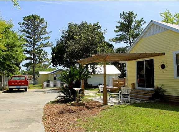 Newly remodeled home and two Florida cottages on one large landscaped lot. Cottages are rented full time at $1000 per month, tenants pay utilities. The main home has three bedrooms and one full bath, large living room with gas fireplace, dining room with sliding glass doors to covered patio, home office off living room, bonus room off master bedroom and a large screened in porch. The homes maintain many original features such as solid wood paneled doors, tall ceilings, glass doorknobs, and hardwood floors. The main home has updated Windows. All three homes have metal roofs installed in 2014, and New AC and heat in 2014. Each cottage has a cozy kitchen, living room, full bath, one bedroom, screened porch and storage room. Two 12x20 hardy board sided wood out buildings also have new metal roofs replaced in 2014. There is a 15x35. Concrete RV pad with 300amp service box, and sewer hookup on the SE corner of the property. Numerous flowering trees and bushes along with orange, fig, olive, and plum trees landscape the property. Close to town on a quiet street. Multi use zoning allows for a home business if desired. Taxes and insurance are low. Text owner at 850-899-1024 to make appointment or send email to wwwmaistro@aol.com Thank you.