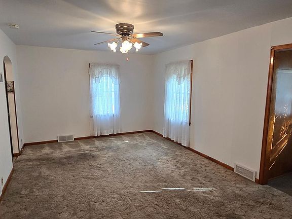 Newly listed 1.5 story home with a spacious backyard. You will appreciate the character of the interior of this home with it's original hardwood flooring & arched doorways. Front entry with storage closet, carpeted living room, eat in kitchen, 2 bedrooms plus full bath on main level. Upper level includes 2 more good sized bedrooms. Basement is unfinished with poured cement foundation includes laundry with utility sinks & room for storage. Detached tandem garage with opener measures 12 x 44-plenty of room for your vehicles & storage! Vinyl siding & windows (2002), shingles (2015/16), gas water heater (2016), forced air gas furnace (2017), & 100 amp breakers. Property is being Sold As Is.