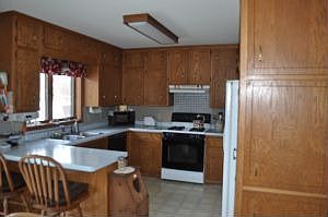 Located on the edge of town, this well maintained home has great curb appeal and a freshly painted interior. Updates include roof 2008, furnace and c/a 2005, new patio door 2010 and water heater in 2009. Neutral decor and so many built-in cabinets! You will be spoiled by all of the kitchen cabinets/work space. Fenced yard and a great 2-tiered deck to enjoy the privacy.