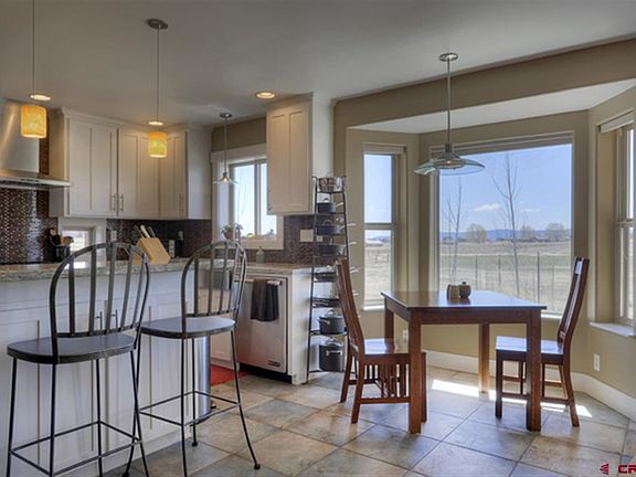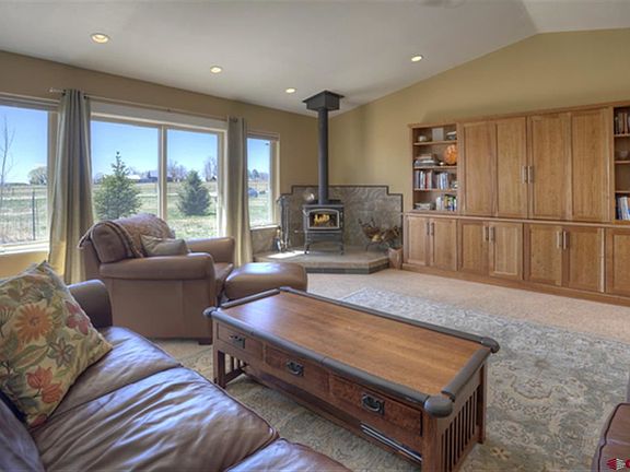 quiet country living with amazing La Plata mountain views on 3 irrigated acres yet so very close to town. completely remodeled by Master Craftsman in 2012. This home includes 3 bed/2.5 baths with an attached 2 car garage, 29x28 heated workshop, and a 23x19 three sided structure for toy or hay storage. This cul-de-sac ranch-style home offers a great room with abundant sunshine, cozy wood stove and vaulted ceiling. The kitchen has a spacious slab granite counters, beautiful glass brick back-splash, custom cabinets, Jenn-Air appliances a pantry and a large island. This home has both breakfast nook and a formal dining area opening to the great room. The master suite has 2 closets (one a walk in) and custom cherry cabinetry, and a beautiful Travertine shower. A jack and Jill bath connects the other two bedroom sand includes new tile, a poured concrete counter top and a new tub. Half bath features a custom cherry farmhouse sink. New Kohler faucets throughout home, additional insulation installed and new cottonwood/aspen/spruce trees planted around the house. lovely outdoor spaces include 2 covered porches and an area for a patio set. Kohler
