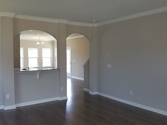 You will fall in love with this four bedroom, two-and-one-half bath home with bedroom/ office on main floor! The Langford plan features a gas fireplace in family room and a beautiful sunroom off of the kitchen. The kitchen has dark cabinetry, an island, Mediterrra Light granite, a large pantry, and stainless steel appliances including gas range. There is wood grain laminate flooring and crown molding throughout the main living areas and the home is painted Agreeable Grey. Upstairs you will find three bedrooms w/ walk-in closets, launfry room, and a spacious loft. The master suite has a separate sitting area, huge walk-in closet, separate tub and shower, granite countertop, upgraded cabinetry, double sinks, and linen closet. The secondary bath has double sinks, granite countertop, and framed mirror.