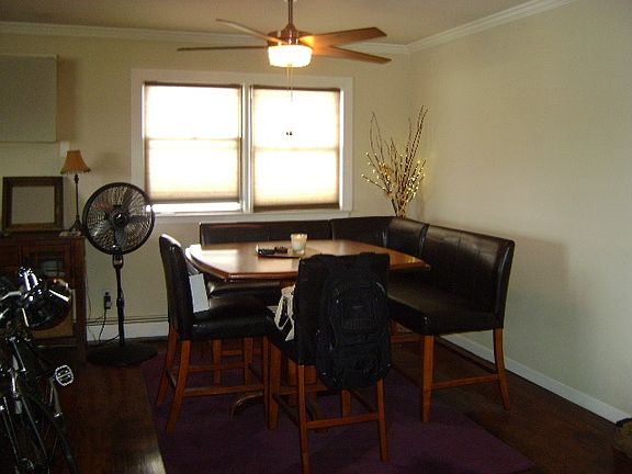 Very modern apartment with hardwood floors throughout. Newer kitchen and baths. Parking for 1 car, washer/dryer hook-up. Available April 15.