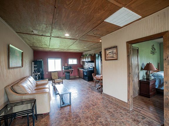WELCOME HOME TO THIS SECLUDED PRIVATE POLE BARN HOME WITH A BEAUTIFUL COUNTRY SETTING! THIS ONE BEDROOM, 1 BATHROOM ON 4.10 ACRES IS THE PERFECT MINI-FARM SETUP. ENJOY THE LONG DRIVEWAY LEADING UP TO THIS PROPERTY WITH FARM GROUND AND PASTURE SURROUNDING YOU. WALK UP AND ENJOY THE COUNTRY SETTING FROM YOUR COZY FRONT PORCH, PERFECT FOR RELAXING IN THE MORNING WITH A CUP OF COFFEE ENJOYING THE VIEWS AND CALM SOUNDS. ENTER THE SLIDING GLASS DOORS INTO THE OPEN CONCEPT LIVING ROOM, KITCHEN AND DINING ROOM THAT COMES COMPLETE WITH REFRIGERATOR, MICROWAVE AND ELECTRIC STOVE. STEP UP INTO THE FULL BATHROOM THAT LEADS INTO THE LAUNDRY ROOM. THE LAUNDRY ROOM COMES COMPLETE WITH WASHER & DRYER. THE BEDROOM IS ALSO SPACIOUS WITH ENJOYABLE VIEWS OUT THE WINDOWS. THERE IS A LEAN TOO WITH STORAGE/WOOD SHOP ATTACHED TO THE HOME AND ANOTHER SHED/LEAN-TO FOR THE CRITTERS AND STORAGE. THE MONTHLY UTILITY AVERAGES ARE: ELECTRIC-DUKE $74, WATER-NORTH LAWRENCE $50, AND RENTED PROPANE TANK. HOME INCLUDES AN HSA HOME WARRANTY WITH BUYER SEVEN STAR UPGRADE.