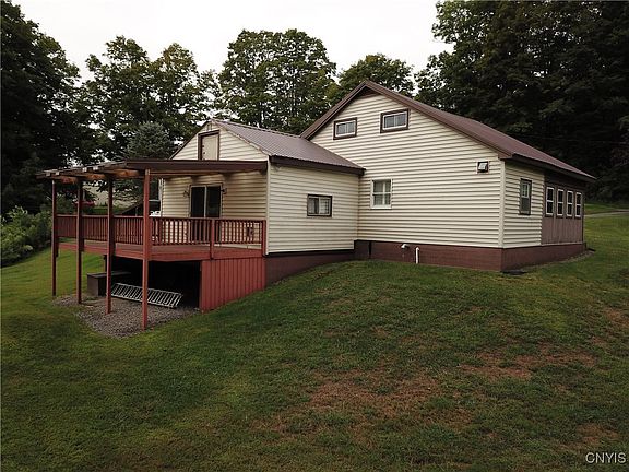 This meticulously maintained 4-bedroom, 1-bath house sits on 4-acre property, complete with a stream flowing through it. On a quiet rural road in the Town of Russia, this home offers a perfect blend of comfort & tranquility. The residence features a detached 2-stall garage & a garden shed close by. With both inside and outside access to the basement. Enjoy year-round comfort with central air, a whole-house propane generator, & an oil-fired forced air furnace, and two fairly new oil tanks located in the basement. You can also heat with wood pellets, & propane heater in family room. Outside large back deck, where you can listen to the gentle sounds of the stream. Outdoor enthusiasts will appreciate the nearby snowmobile & ATV trails. Located within the Poland Central School District and low Herkimer County taxes, on the edge of the Adirondack Park. Includes a circular paved driveway. Also, there is a mobile home site with septic, electric & water available. The mobile home site should only be considered once confirmed with town codes. With charming hardwood floors and move-in readiness, this lovely home is the perfect place to start making memories in nature's paradise!