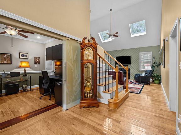Welcome to this stunning, meticulously maintained 3-bedroom, 2.5-bath home with a bonus room and 2-car garage in the highly sought-after Birdsong subdivision! Full of charm and thoughtfully designed for modern living, this home offers an ideal blend of comfort, functionality, and style. Step inside to discover a dedicated home office with elegant sliding tempered glass doors and a spacious family room featuring soaring ceilings, a cozy fireplace, and seamless flow into the dining area and chef's kitchen. The kitchen is a culinary dream, boasting high-end appliances, gleaming granite countertops, a large island with a gas cooktop, a built-in wall oven and microwave, a wine fridge, and an entire wall of custom cabinetry for exceptional storage. Conveniently located off the kitchen, the laundry room offers custom cabinetry, a deep stainless sink, and a practical laundry chute for added ease. The main-level primary suite is a private retreat, complete with a wall-length built-in dresser and a spa-inspired en-suite bath. Enjoy a luxurious walk-in tiled steam shower, a soaking tub with a built-in seat, dual sinks vanity, a private water closet, and a spacious custom walk-in closet. Upstairs, you'll find two additional bedrooms and a generously sized bonus room—perfect for a playroom, media space, or additional guest accommodations. Step outside to enjoy beautifully landscaped grounds, a screened-in porch, and a fenced side yard. French doors lead to a spacious back sun deck with an electric retractable awning—ideal for entertaining or relaxing. The heated pool includes a cover and solar cover, with a separate gated deck area to unwind in privacy. A large custom-built workshop completes this exceptional property, providing plenty of space for hobbies, storage, or your next creative project. A permanent home generator is also included in this home. This fabulous one-street cul-de-sac subdivision has no HOA, but everyone contributes 100.00 annually to maintain the street lights.