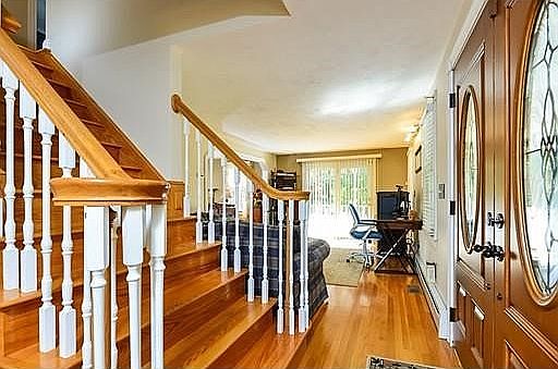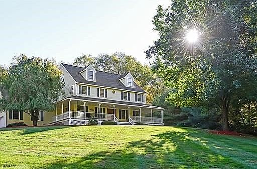 A place to call home. Turning into the driveway, you get an immediate welcoming feeling when you see this home. Large wrap around farmers porch overlooking sweeping green laws. Entering the home you will find an open floor plan with large rooms ideal for entertaining. Living room flows into the Family room and the Family room, flows directly into kitchen which offers natural cherry cabinets and granite counter tops. Formal Dining with hardwood flooring. Family room with fireplace and stove insert. Skylights. 2nd floor offers three bedrooms. the mater suite has a private sitting room and balcony, private bath with whirlpool tub and shower, providing a private haven for the adults while being within ear shot of the kids. Third floor offers another bedroom, full bath, sitting area or office, ideal for guests, in-laws, teens or young adults living at home. Nicely landscaped private lot; easy access to highways, shopping and recreation areas; new roof. Perfect property to call home. New roof.