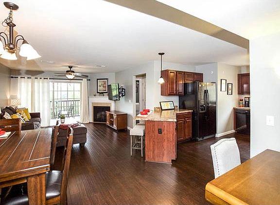 Easy Living at its best. Gorgeous & Well Maintained Community located in Beautiful Cottleville, just a short drive to everywhere. This 2nd Floor End Unit that offers the peace & quiet you are looking for. The open floor plan boasts beautiful wood laminate floors, a spacious kitchen with ample cabinet space, black appliances, laundry storage area, 2 full baths, and ceiling fans in all rooms. The Master Bedroom features wood floors, ceiling fan, walk in closet and Master Bath with large vanity and an over-sized glass shower. Storage is a Breeze with plenty of Closet Spaces throughout. Balcony overlooks the water has a view of the park & adds to the charm of this wonderful unit. Family / Dining area is open to kitchen, offering the ideal social setting. Condo fees includes Building Maintenance, Snow Removal, Water, Trash, & sewer. This unit includes one covered parking space.