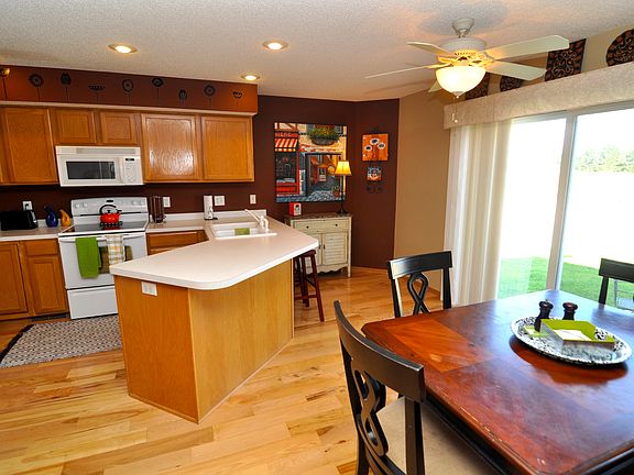Nice end unit town-home with hickory hardwood floors on main level. Dramatic ceiling height adds to spacious main floor layout that boasts a handsome gas fireplace as focal point. Master bedroom with walk-thru bath features jacuzzi tub and separate shower. Cedar closet, large kitchen, backyard patio and finished lower level with bath. Clean and convenient location near Hwy 169.