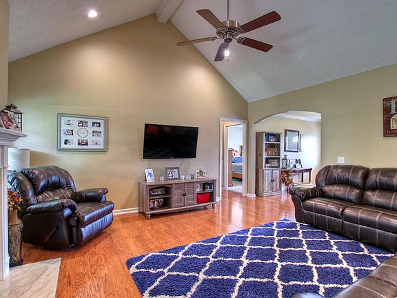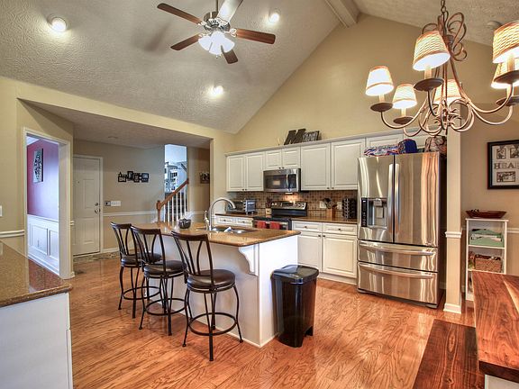 Rocking chair front porch with views of community pool just across the street. Zoned bedrooms down w/ bonus and built-ins up. Vaulted ceiling in spacious kit. w/ quartz countertops, tile backsplash and island. Hw's updated in LR, new carpet, fantastic privacy fenced backyard w/ 1 yr. old shed wired for elec. Wheel chair lift in garage.