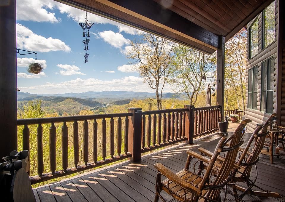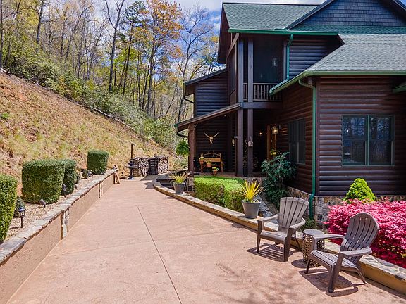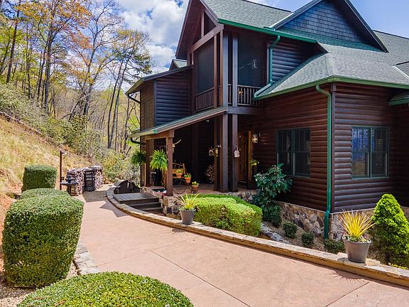 Paved to the door with 11.25+/- acres and LONG range mountain views! This log home offers 3 BRs with en-suites, vaulted ceilings w/hardwood floors, high-end finishes, & lighting throughout. Entertain in this lg open floor plan & kitchen w/plenty of prep space, granite countertops, & updated appliances. The living rm has a wood-burning fireplace to cozy up to. The windows in the great rm have remote control blinds. Lg master bath has a soaking tub, dual vanity, & walk-in closet. The lwr lvl of this home does not disappoint with ceramic tile & a 2nd wood-burning fireplace, and hot tub on porch! There is a guest BR & BA on this lvl & a family rm equipped with a pool table!