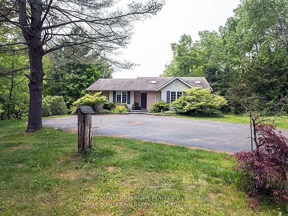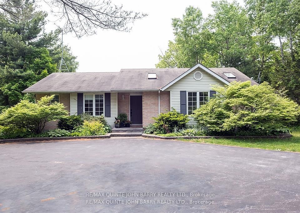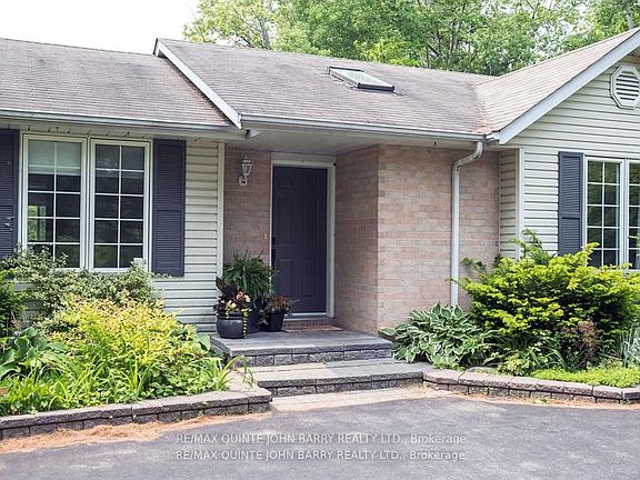 Welcome to your private retreat! This beautiful bungalow rests on just over an acre in a peaceful country setting, framed by mature trees, a backdrop of forested privacy, and excellent curb appeal with a wide paved driveway. Perfect for both relaxation and entertaining, the property offers something for everyone. Spend sunny afternoons by the above-ground pool, host summer gatherings on the expansive deck complete with a gazebo, or enjoy cozy evenings around the fire pit. Inside, soaring cathedral ceilings in both the living room and kitchen create a bright, airy atmosphere. The updated kitchen, designed with a breakfast bar, flows seamlessly into a formal dining room ideal for hosting family and friends. The spacious living room is warm and inviting - great for entertaining! The double doors open to a bright office, also suited as a den or 3rd bedroom, and can be accessed from both the hall and the main living area. Enter the primary bedroom suite which is your own private retreat offering a spa-inspired ensuite with a soaker tub, walk-in shower, and a skylight. An additional bedroom, and a newly renovated guest bath, with a skylight, complete the main level. The side entrance leads to the partially finished, insulated basement with a bathroom rough-in, offering excellent in-law suite potential or plenty of space for future expansion. Set in a quiet and desirable location just minutes from Highway 401, CFB Trenton, and local amenities and only about an hour to the GTA this immaculate home offers the rare combination of privacy, comfort, and convenience. All appliances are included, making this a truly move-in ready opportunity.