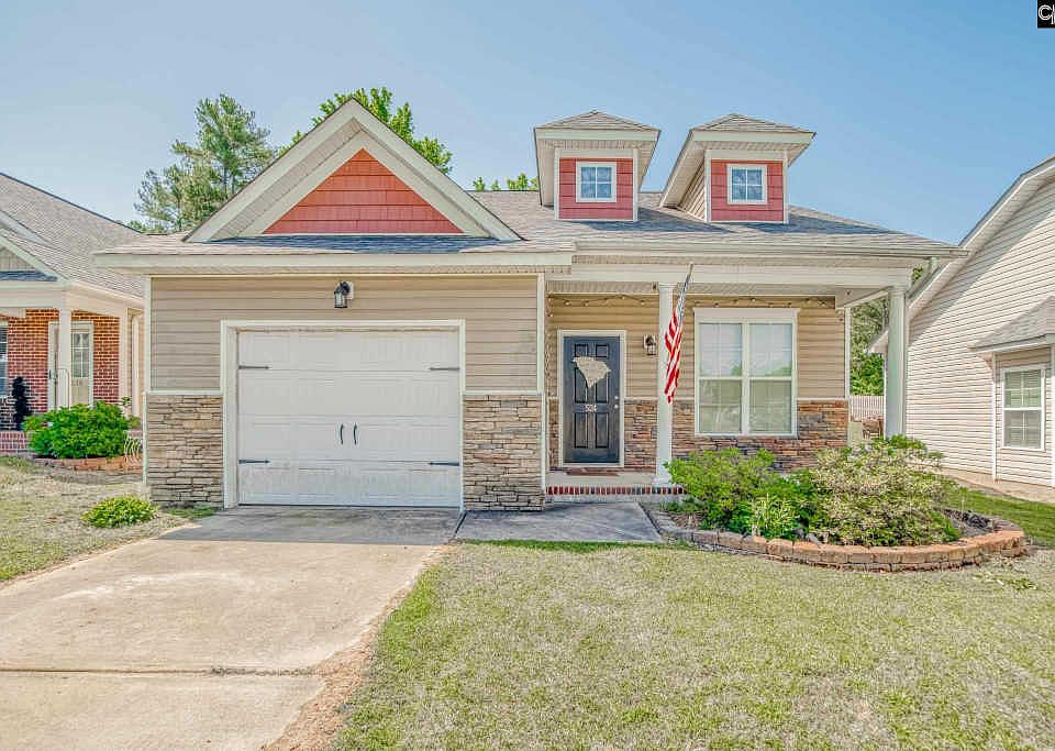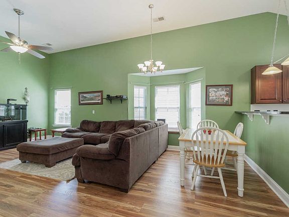 Stone Accents highlight the front of this open floor plan home, Open concept kitchen with Granite Counter-tops and Cherry finish cabinets. Vaulted ceiling in family room, laminate hardwood floors in family room and both downstairs bedrooms, large spacious master on the main level, master bath features double vanity, garden tub/shower, and tile floors. , 1-Car Garage, 'Rocking Chair' Front Porch and Private Back Patio over looking large fenced in backyard that backs up to a wooded area.