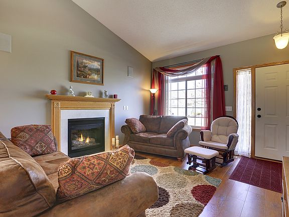 Desirable End Unit with main level living convenience plus finished bsment. This bright and cheery home offers: cozy fireplace, vaulted ceiling, laminate wood flooring, and relaxing patio. Great kit w/new high end porcelain tile flooring and backsplash.
