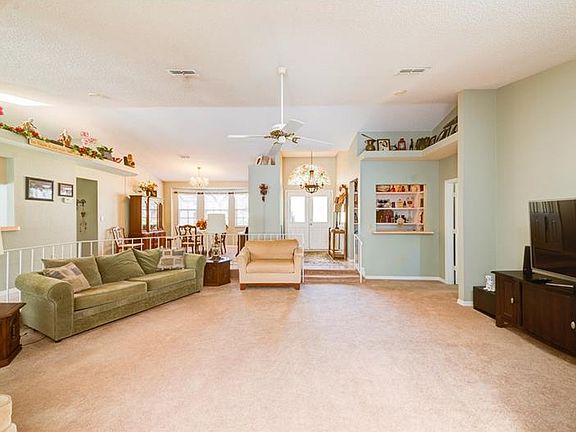 Located in the sought after East Linden Estates, and nested on over a half acre is a perfect place to call home. Walking through the double door elegant entry way, you are greeted to a wide open floorplan and sunken living room. Alcove area with pass through is a great space for a mini library in your own home. Vaulted ceiling for a bright and airy atmosphere and planter shelves for a decorative touch. Formal dining room with bay area windows. Wonderful open kitchen with breakfast bar, and wood laminate flooring that flows right to the breakfast nook for a quick bite. More bay windows in the breakfast nook making this a bright and happy home! Take the stained glass French doors off of the large master bedroom to a perfect little lanai area. Great space for sipping a cup of coffee and reading the morning paper. Make every day a spa day in your beautifully updated master bath with garden tub and walk in shower. Nice patio on the back, great area for grilling and watching the family enjoy the oversize back yard. Call today, you will be glad you did! Want a POOL Financing Available with your mortgage. HOA $140 per Year. Call us for more information.