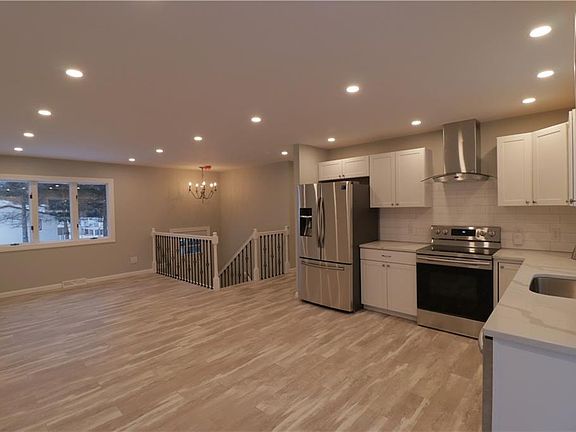 Updates throughout this stunning home. New bathroom, kitchen cabinets, countertop, refrigerator, stove, dishwasher, floors, siding, recess lighting, and much much more! Call to view today! Aprox 600 soft of finished space on the first floor which would total over 1500 sqft!