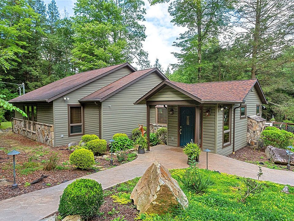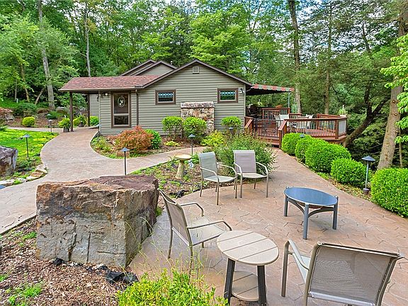 Imagine being Nestled in the Woods, just enjoying the Peaceful Sounds of Nature Abound, That is 524 Dinner Bell Road. Located just 2 miles from Nemacolin Woodlands Resort and 5 miles from Ohiopyle!! The Property has waterviews of, and access to Beaver Creek! Exquisite Landscaping emphasized by Tasteful Landscape Lighting invite you into the home. The Home has 2 Bedrooms and 2 Full Baths. The Master Bedroom Boasts Vaulted Ceilings, 2 Large Walk-in Closets and an En-Suite Master Bath with Jacuzzi Tub. Kitchen is Open Concept and All Appliances Stay. Living Room is highlighted by a Gorgeous Stone Fireplace. Custom Decking outside is an Ideal Space for Entertaining, & the Whole Home Generator will provide you Peace of mind. The Large 2-Car Garage is Heated with a Full Kitchen and additional Washer/Dryer! Above the Garage is a 30x18 Open Concept Guest Suite complete with Kitchenette and Full Bath! (which could produce income!)