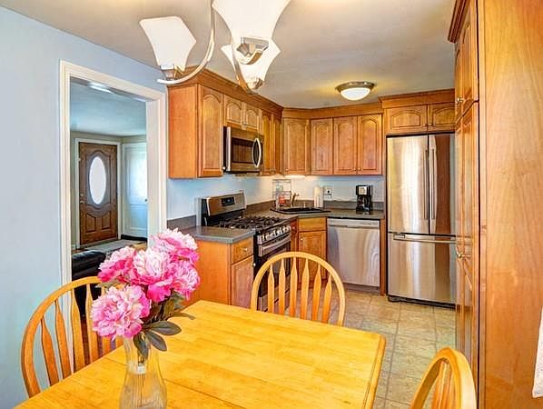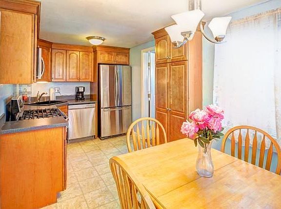 Move-in-ready home for land lovers on Abington line. Enjoy summer bbq's on this enormous double lot, with a massive deck. Stainless steel appliances, hardwood floors. Upgraded cabinetry, brand new highest efficiency gas furnace available. Hot water on demand with storage tank, best of both worlds. Newly insulated attic and basement. Steps to Ashfield Middle School. Close to Brockton Hospital and Baker Elementary School. Large shed provides abundant storage. Fully fenced in yard. Freshly painted and power washed. Steps to Cardinal Spellman Private High School. Approx. 15 year old roof. Huge master bedroom fits king size bed. All offers due on Monday April 11 by 7pm.