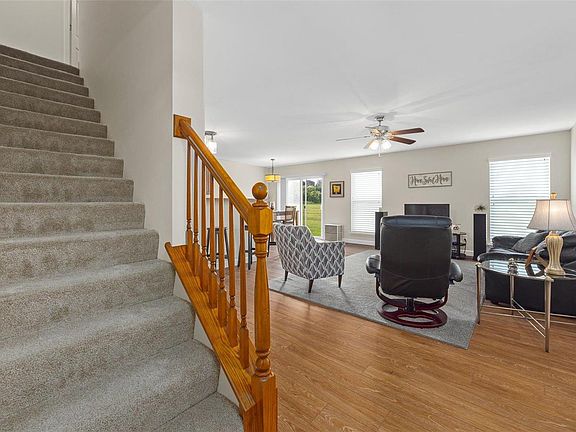 Welcome to this beautifully maintained 2-story townhome, featuring a new roof and new flooring throughout. This gently lived-in home offers 3 spacious bedrooms, 2.5 bathrooms, and a 2-car garage. The main level boasts a warm, inviting and open floor plan with a kitchen that includes a breakfast bar and ample cabinet and counter space. The loft area is perfect for an office or study space. All bedrooms come with walk-in closets, providing plenty of storage. The convenience of a 2nd-floor laundry room adds to the home’s functionality. The unfinished basement offers potential for customization to suit your needs. Enjoy the amenities of the subdivision, including a pool and sports court. The yard is maintained by the HOA, ensuring a well-kept exterior. The property backs to common ground and an undeveloped field, offering a sense of privacy and tranquility. Located in the highly sought-after Fort Zumwalt West School District, this home is close to highways, entertainment, dining, and more. Location: Other