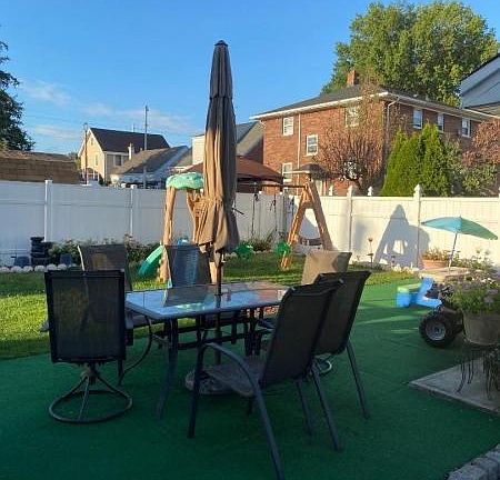 Beautifully well kept 1 family home. A must see! Featuring renovated kitchen w/granite counters & stainless steel appliances. Living room & dining room combo. 5 bedrooms & 3 full baths. Hardwood floors throughout. Ample full finished basement - perfect for entertaining. Plenty of closets and storage space. Large back yard with patio. Oversized garage and driveway w/room for 5 cars or more. Close to major highways, airport, and shopping centers.