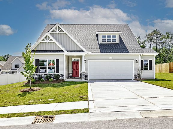 This home sits on a corner lot and offers stylish, low-maintenance living with an open-concept great room featuring a vaulted ceiling with faux wood beam and a gas log fireplace with black granite surround.The kitchen includes an island, “Trigato” quartz countertops, white shaker cabinets, white herringbone tile backsplash, pantry, and stainless steel appliances, including a microwave, dishwasher, and gas range. The dining area opens to a rear covered porch—ideal for outdoor dining.The first-floor primary suite features a tray ceiling with crown molding and an en-suite bath with a white dual sink vanity with a “Simply White” quartz countertop, walk-in tile shower, linen closet, private water closet, and walk-in closet access.Two additional first-floor bedrooms share a full hall bath with a vanity and tub/shower combo.A laundry room and coat closet are conveniently located near the garage entry.Upstairs includes a fourth bedroom with a walk-in closet and a full bathroom with a walk-in shower.Exterior details include vinyl siding with board and batten accents, stone skirt, dormer, dimensional roof shingles, and a 2-car garage.The front door, painted SW “Iron Ore,” includes a sidelight and transom window, and smart keypad entry.Fiber optic internet availability, Energy Plus Certified, and backed by a 1-2-10 builder in-house warranty for peace of mind.Located near downtown Aberdeen in Bethesda Pines with trails, dog park, playground, and more—just 30 minutes from Fort Bragg. Home Amenities include: BreakfastArea, CoveredPatio, Fireplaces, GreenConstruction, VaultedCeilings, WalkInClosets.